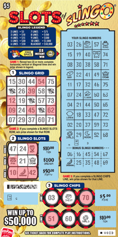 How much more fun could you have playing Slingo? How about Slots of Slingo! It’s your favorite game emblazoned all in gold and complete with a Slingo grid game, a Slingo slots game, and Slingo chips. Even better, you could win the game’s top prize of $50,000 with a blackout on your Slingo grid. It just doesn’t get any better playing Slingo than this.