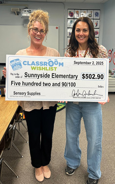 In the 21st Century, Newton’s law of gravity is now a kindergarten concept in Nichole Jones’ classroom at Sunnyside Elementary. Her Classroom Wishlist delivery included indoor recess activities and teaching tools that are interactive, fun, and educational. They also teach the basic concept of gravity.