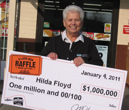 January 4, 2011 - Boise - A couple of days prior to buying an Idaho $1,000,000 Raffle ticket, Hilda Floyd thought she had a $25,000 winning lottery scratch ticket. She received the ticket from a friend, scratched it, saw she won $25,000 and quickly signed the back of her ticket and was taking her friend to dinner before realizing she'd been given one of those phony, joke tickets./p>