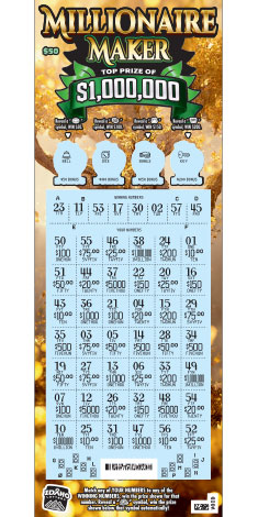 Match any of YOUR NUMBERS to the WINNING NUMBERS, win the prize shown for that number. Reveal a “Gold Bars” symbol, win the prize shown below that symbol automatically!