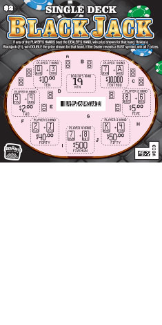 If any of the PLAYER'S HANDS beat the DEALER'S HAND, win prize shown for that hand. Reveal a Blackjack (21), win DOUBLE the prize shown for that hand. If the Dealer reveals a BUST symbol win all 7 prizes.